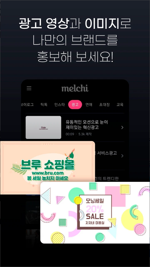 광고 영상과 이미지로 나만의 브랜드를 홍보해 보세요!