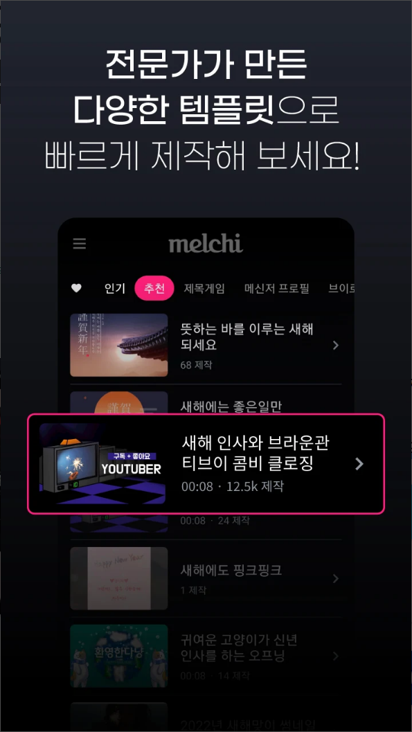 - 1,000개 이상의 영상 제작 템플릿 지원(실시간 업데이트 중)