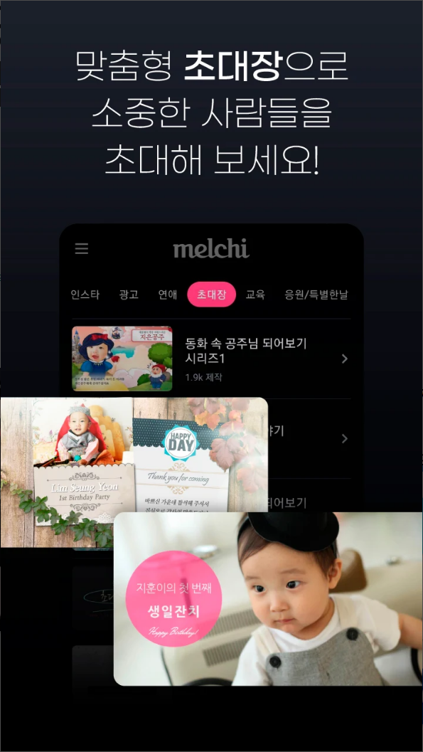 맞춤형 초대장으로 소중한 사람들을 초대해 보세요!