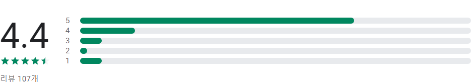Play 스토어의 앱 평점 및 별표 1, 2, 3, 4, 5개 리뷰의 개수에 따라 표시되는 막대그래프는 앱의 평가 횟수가 매우 적은 경우가 아니라면 사용자 리뷰의 전체 기간 평균값이 아닌 앱의 현재 품질 평점을 바탕으로 합니다.