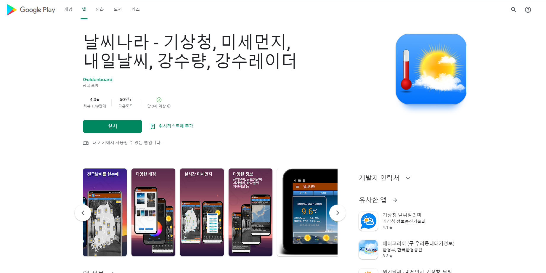 날씨나라 - 기상청, 미세먼지, 내일날씨, 강수량, 강수레이더 - Google Play 앱